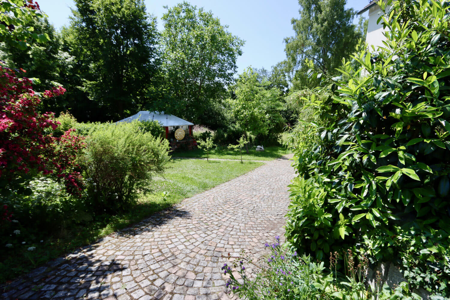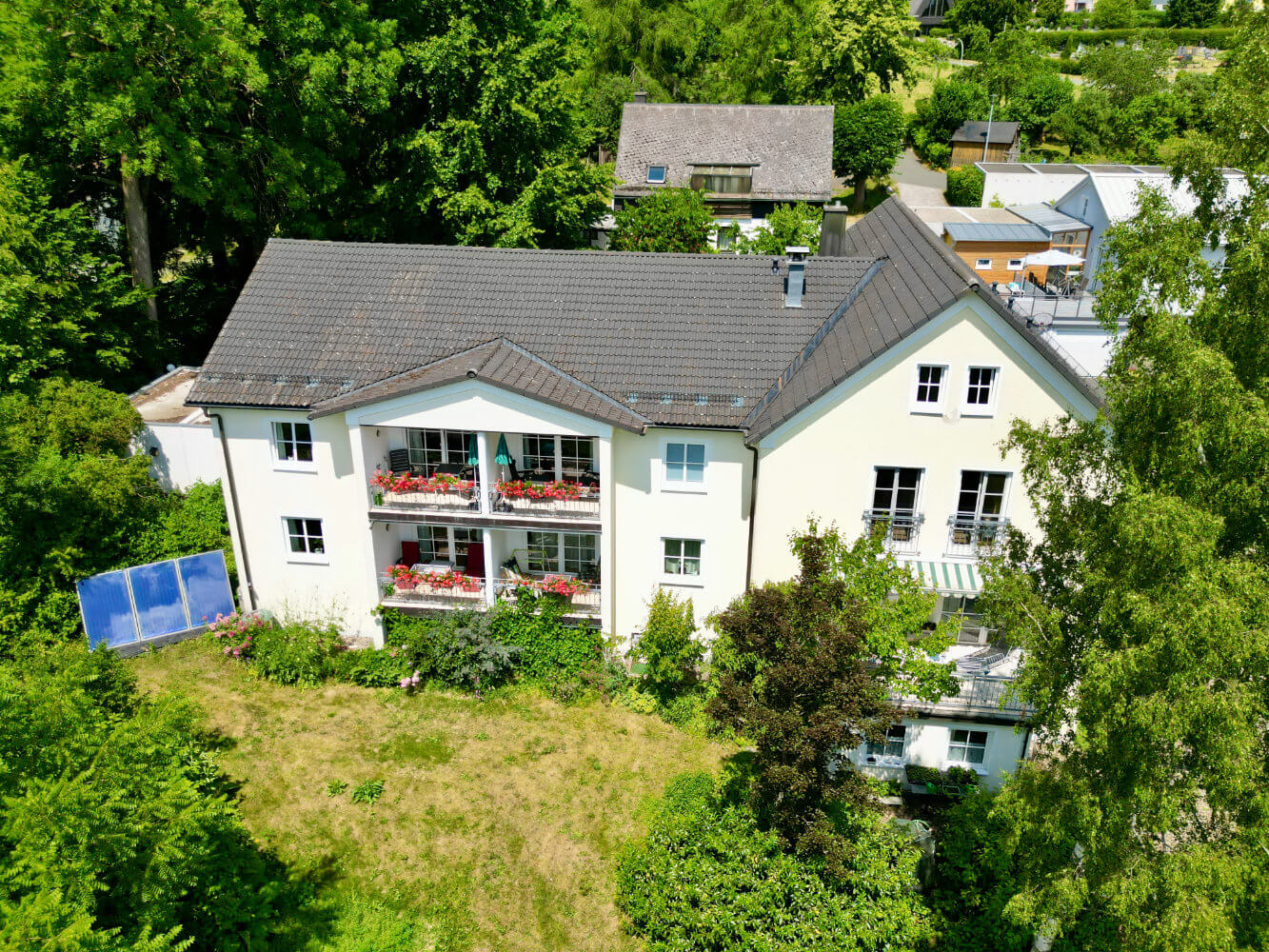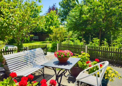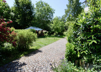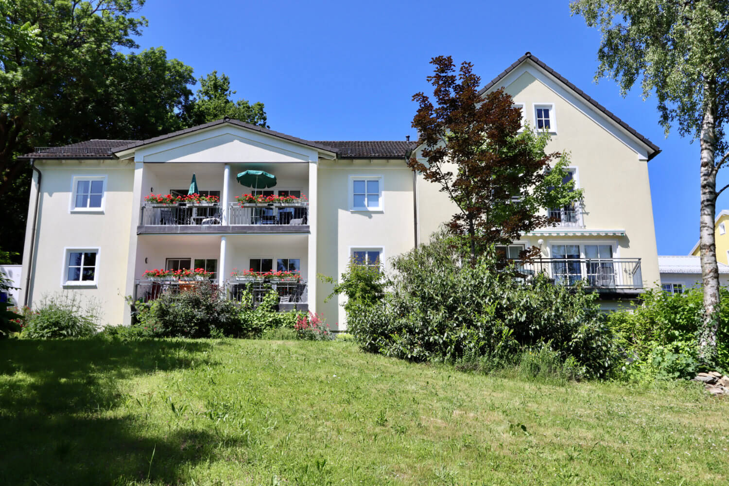 Die Villa Sonnenhof liegt ruhig, abgeschirmt vom Straßenverkehr, eingebettet in einen großen, parkähnlichen Garten. Gleichzeitig sind Kurpark, Therme und Ortsmitte nur wenige Gehminuten entfernt. Diese Kombination aus Zurückgezogenheit und zentraler Lage ist besonders – und genau das schätzen unsere Gäste.