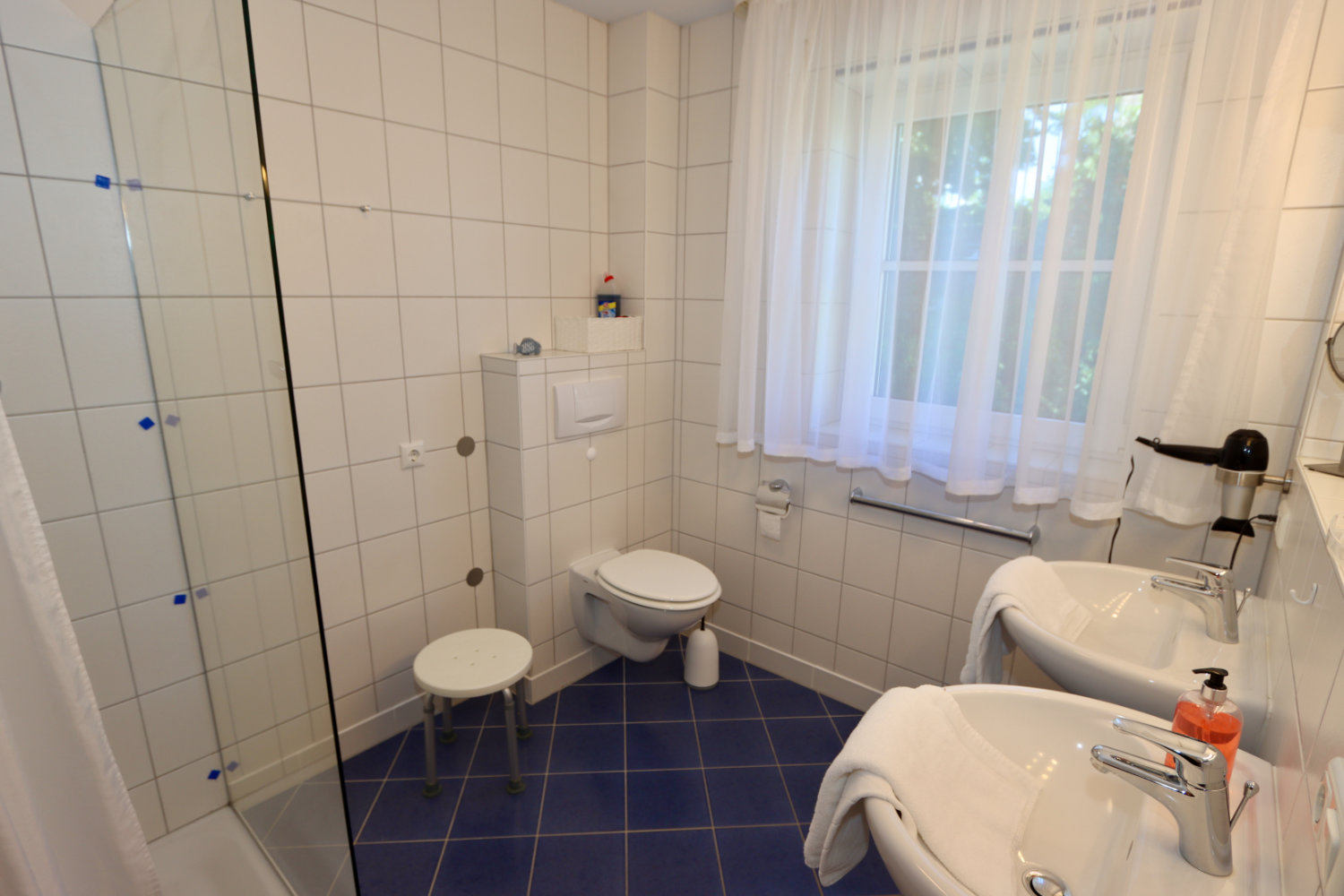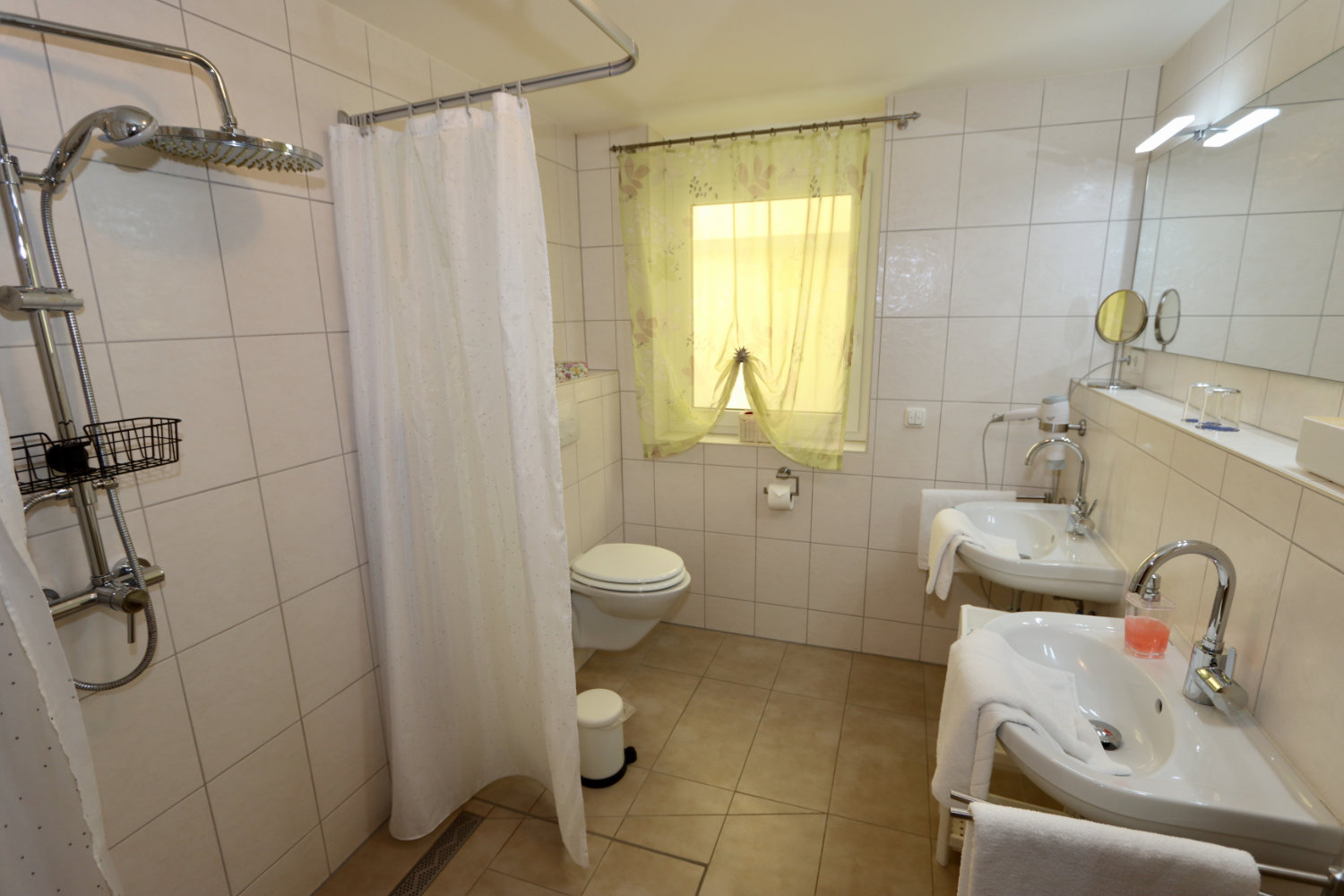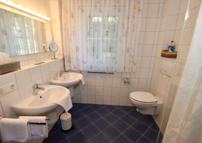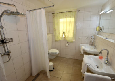 Großes Bad mit Fußbodenheizung und zwei Waschbecken