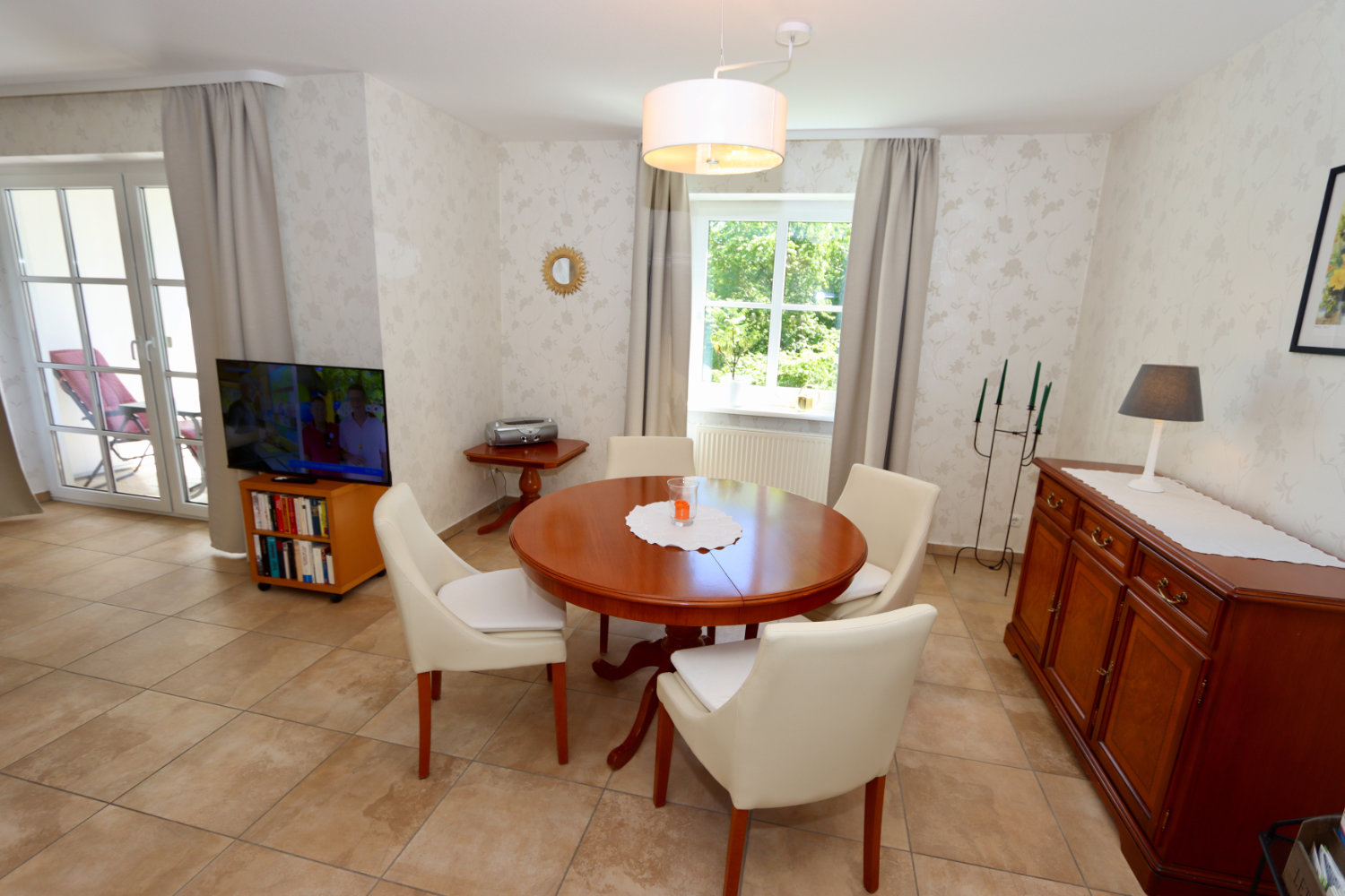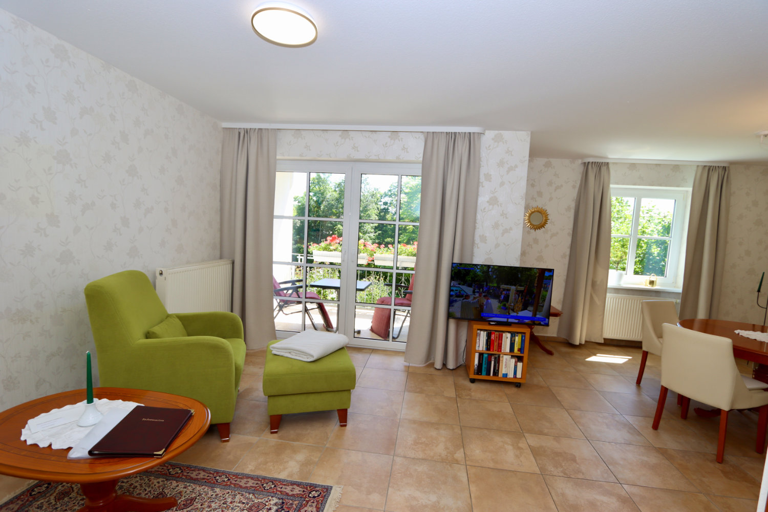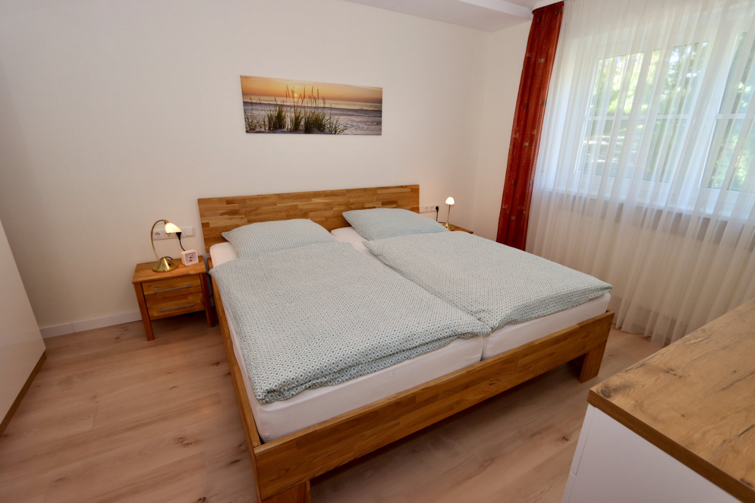 Im direkt benachbarten Sonnenhofweg 2 befindet sich eine besonders großzügige Ferienwohnung mit zwei getrennten Schlafzimmern (Einzelbetten). Diese Wohnung ist barrierefrei gestaltet und auch für Rollstuhlfahrer geeignet – inklusive ebenerdigem Zugang und behindertengerechter Dusche.