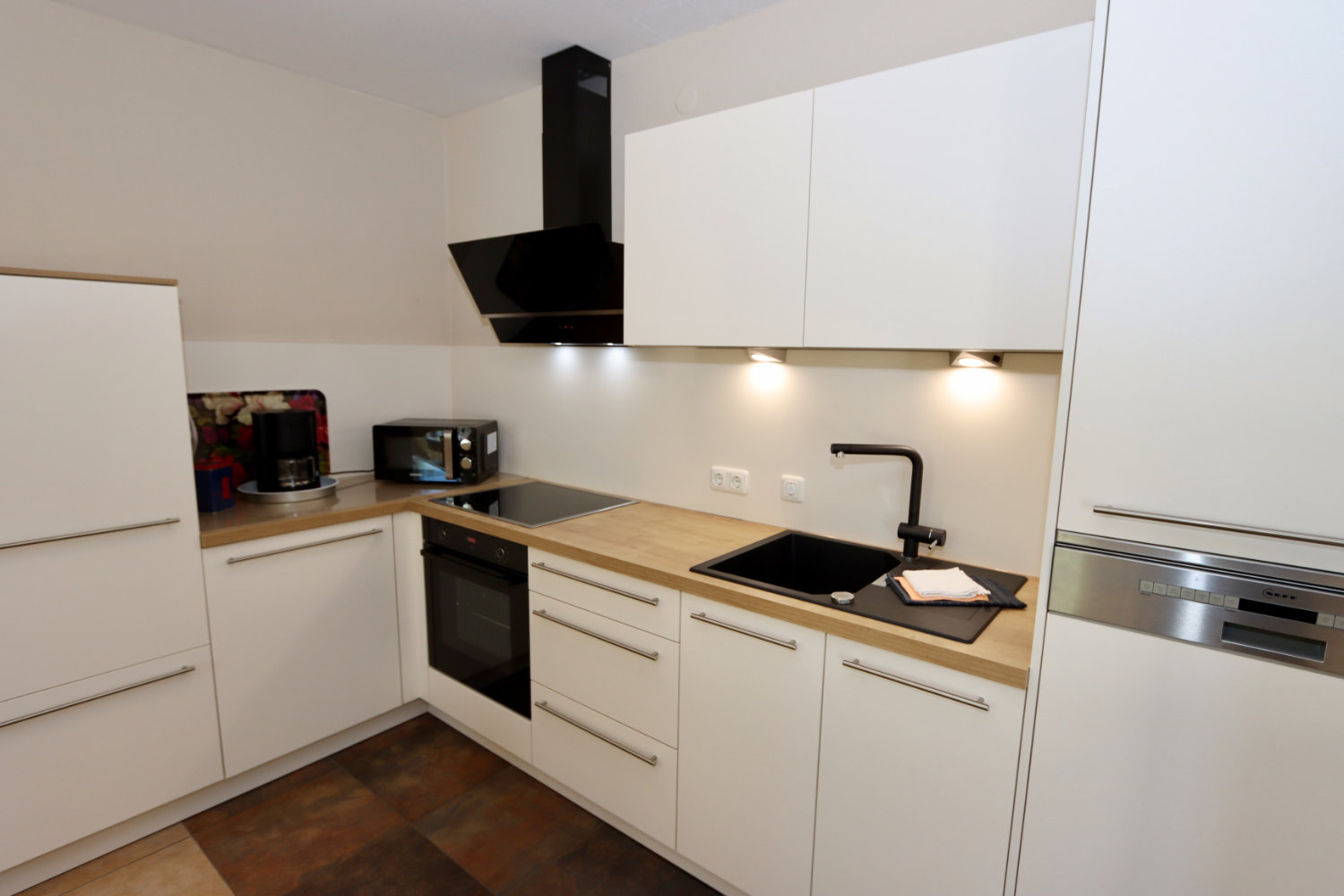 Voll ausgestattete Küchenzeile inkl. Geschirrspüler, Mikrowelle, Kaffeemaschine und Wasserkocher