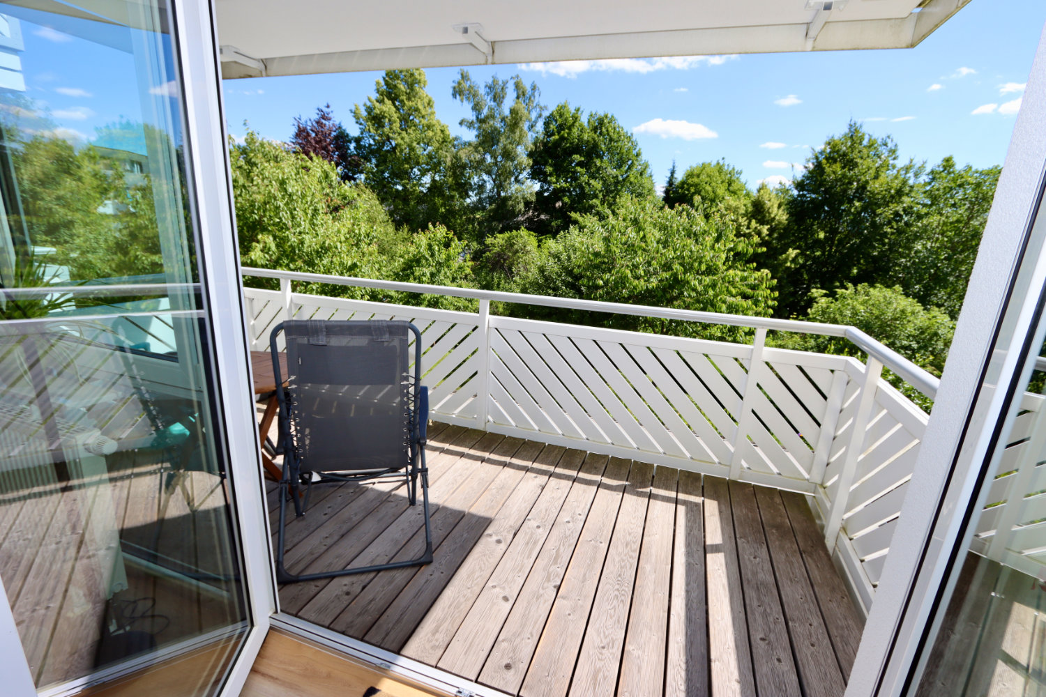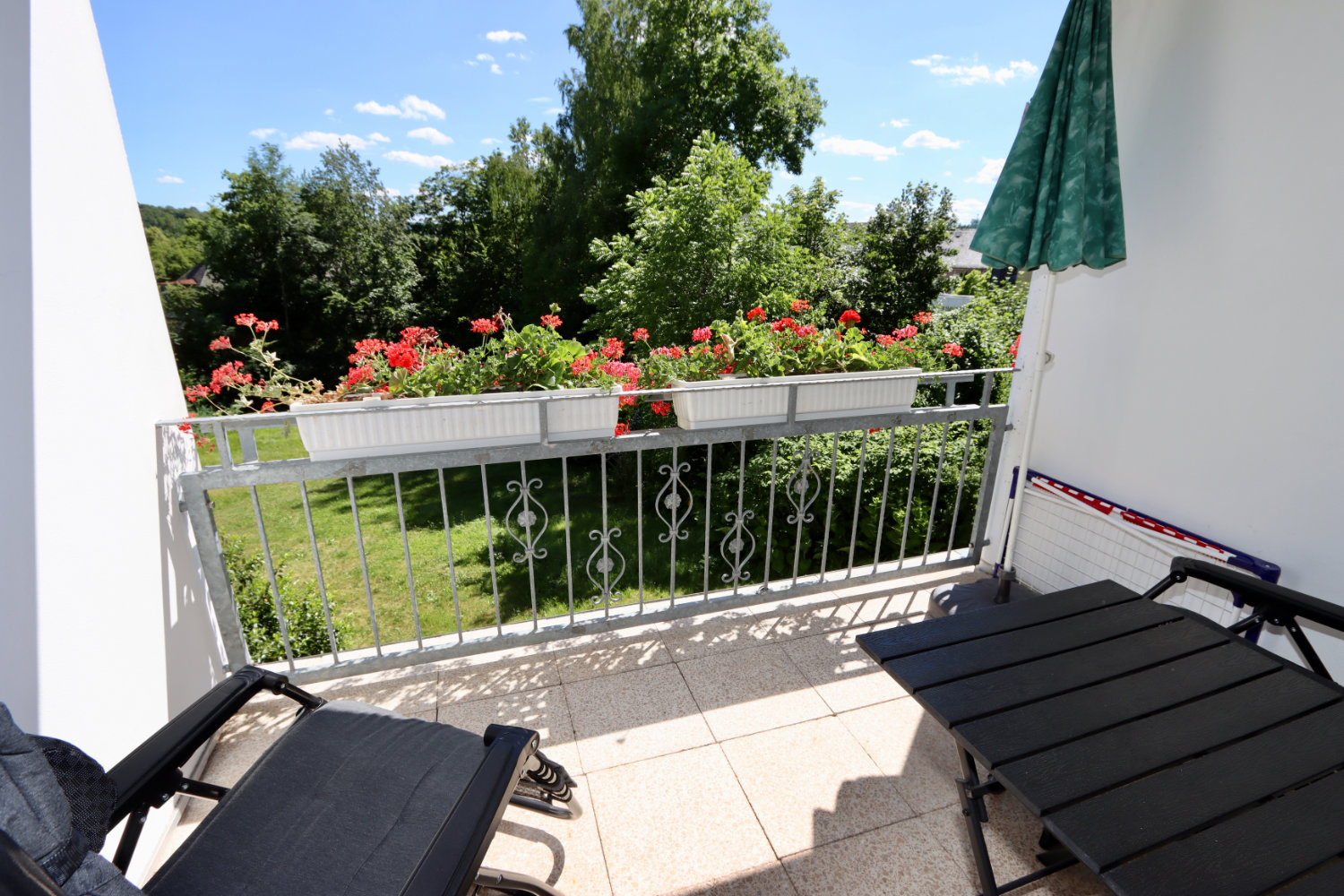 Balkon oder Loggia in Südausrichtung mit Blick ins Grüne