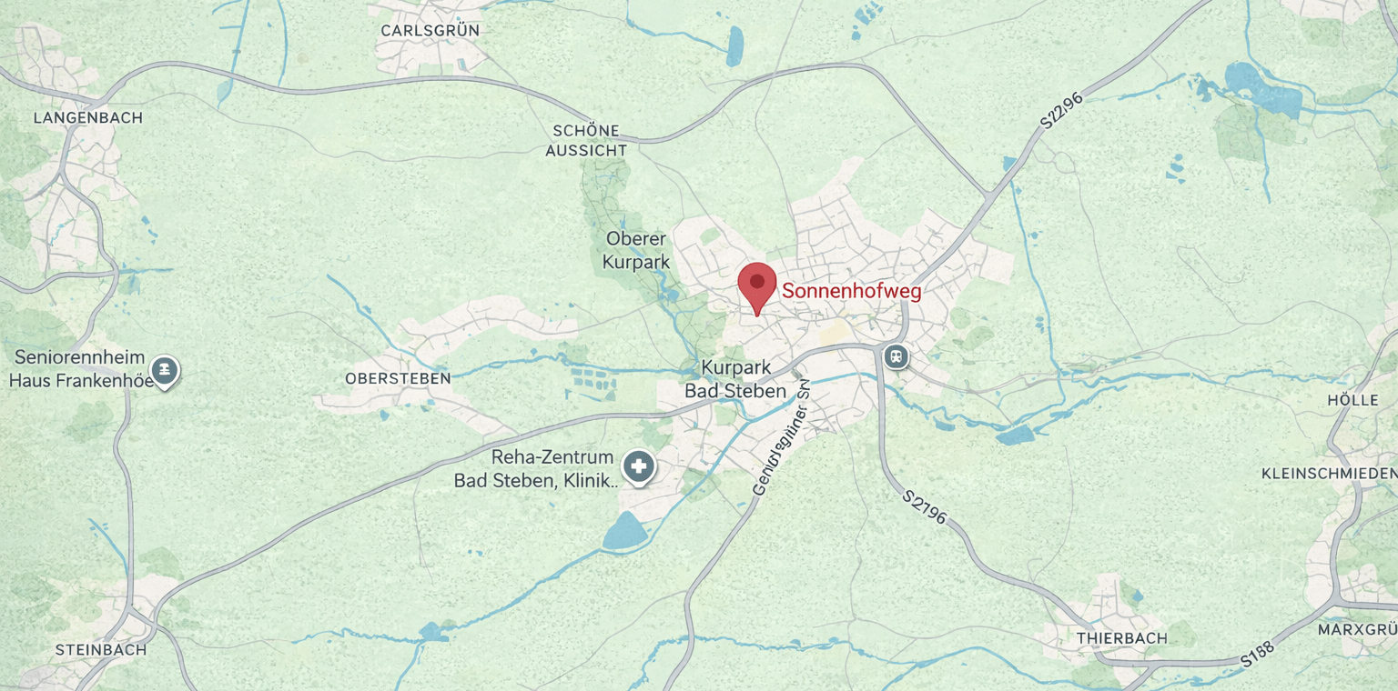 Bad Steben liegt im Herzen des Frankenwald und ist einer der bekanntesten Kurorte Nordbayerns. Der Ort ist ruhig, gepflegt und konsequent auf Erholung ausgerichtet. Therme, Kurpark und viel Natur prägen das Bild. Wer Entspannung sucht, wandert, radelt oder einfach abschalten will, ist hier richtig. Trubel gibt es woanders – Bad Steben steht für Ruhe, Gesundheit und klare Luft.